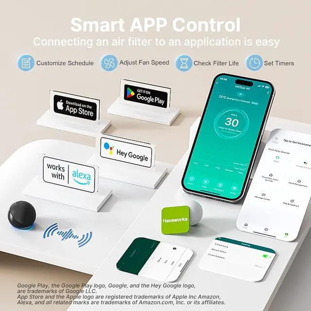 Smart Air Purifiers for Home & Large Room with WiFi & Voice Control: Remotely control this air purifier for large room and air purifier for bedroom via app and voice control, this smart air purifier intelligently detects air conditions and auto-optimizes working modes. This air purifiers for home adjusts fan speed by real-time air quality with a filter reset reminder, ensuring this air purifier maintains efficient purification for home and large room use