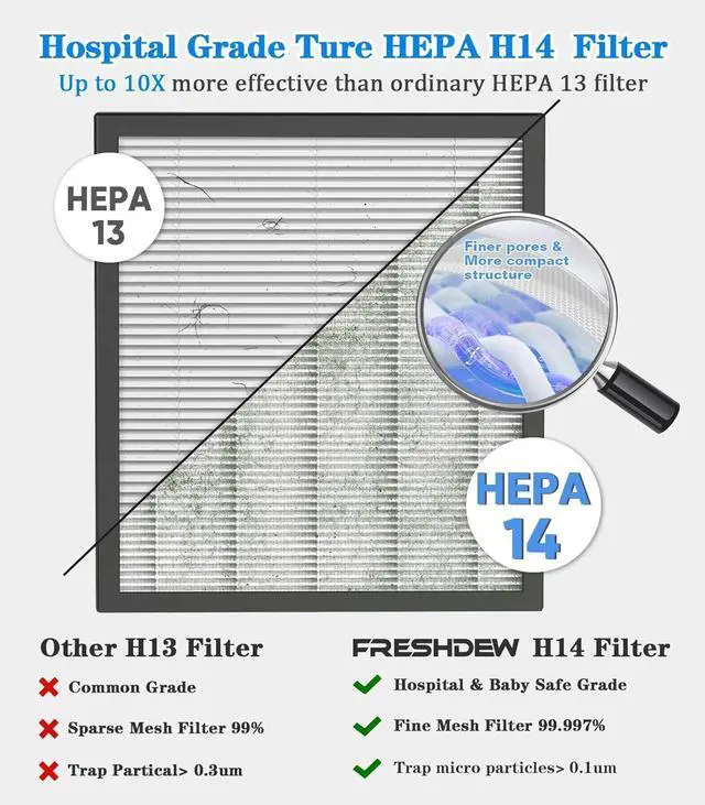 High-Performance FiltrationThe advanced filter boasts an impressive 99.97% efficiency in containing ultra-fine particles, ranging from 0.1 to 0.3 microns. Performance that's independent laboratory verified for effective removal of pollen, smoke and pet dander. With 4-Stage Advanced Filtration,creating a healthier living environment for you and your family