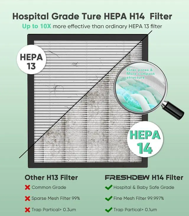 FRESHDEW Air Purifier for Home Up to 2300ft² With H14 True HEPA Smart WiFi Control & Double-Sided Intake | 22dB Ultra Quiet for Bedroom/Pet Homes | Removes Smoke, Odors, Pollen, Dust, Dander