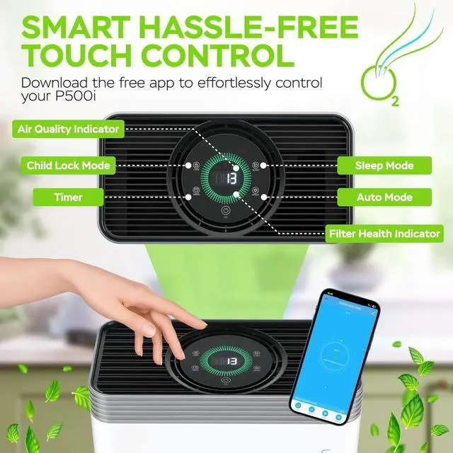 Smart WiFi Control & App: Manage your air purifier from anywhere via the app; Set timers, adjust fan speeds, and monitor real-time air quality for ultimate convenience.