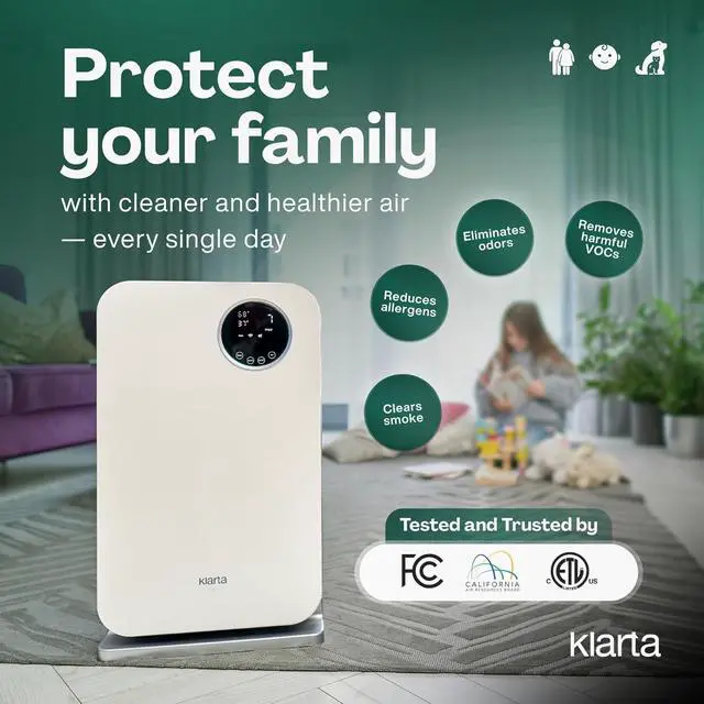 4. Smart Control from Anywhere Use the Klarta app to monitor air quality, set schedules, adjust fan speeds and change modes remotely.