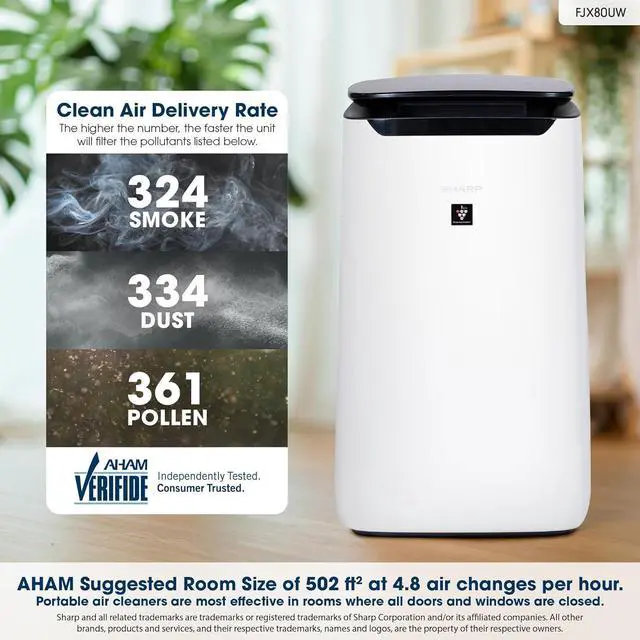 ACTIVE CLEANING: Beyond triple filtration, our FXJ80UW features Plasmacluster Ion Technology for an active cleaning process. Sharp Plasmacluster Ion Technology has been tested by laboratories around the world.