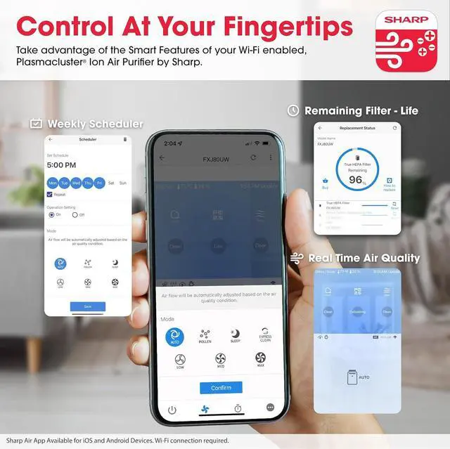 SMART HOME FEATURES: Monitor your air quality and adjust settings remotely using the SHARP AIR App. Compatible with Amazon Alexa and Google Assistant to allow voice control.