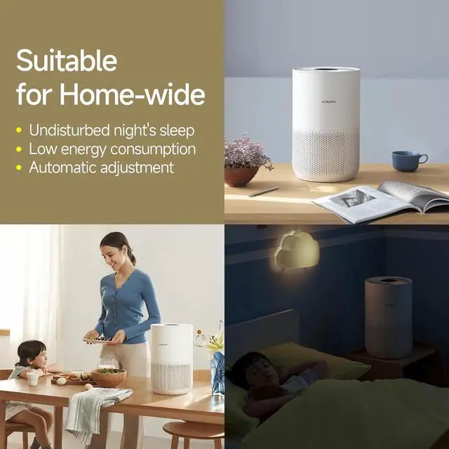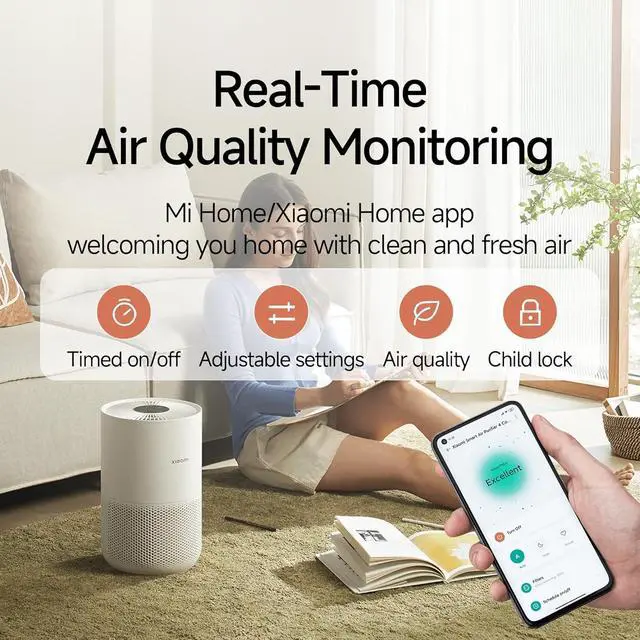 - & Four-color PM2.5 indicator + Mi Home app for scheduling and voice commands(Works with Alexa/Google). Auto mode adjusts fan speed based on air quality