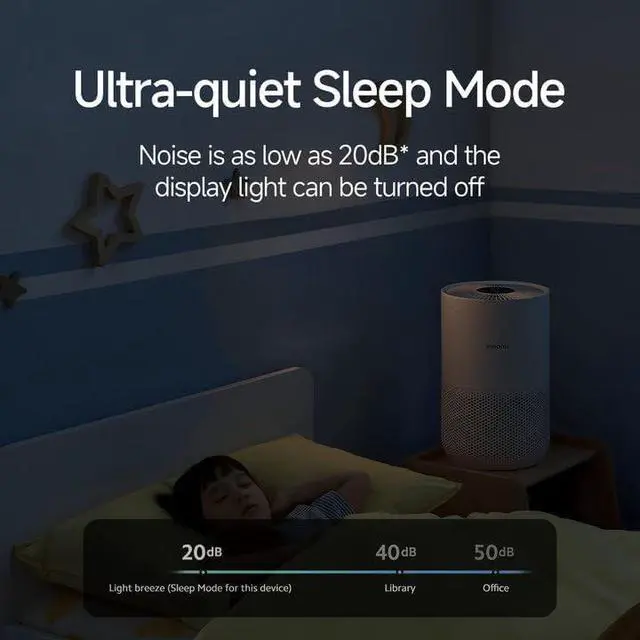 - Operates at near-silent 20dB with auto-display dimming. DC tech uses 0.7kWh/24hr(* Low-noise 20dB Sleep Mode: Refers to the noise value generated when the product is in Sleep Mode. Data from CVC Testing Technology Ltd. Report no.: WTS2022-4212.Only 0.7kWh are needed for 24 hours of purification: 27W x 24h ÷ 1000 = 0.684kWh. 24h power consumption of 0.684kWh, approximately 0.7kWh)