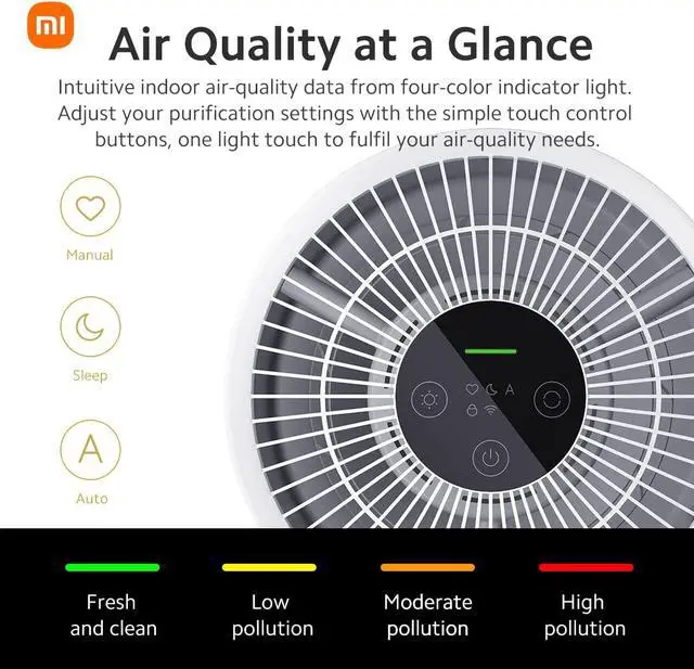Xiaomi Air Purifiers for Home Bedroom, H13 True HEPA Filter, Ultra Quiet, Smart Control, Air Quality Sensor, Small Large Room Cleaner for Pets, Dust, Allergies, Wildfire, Smoke, Auto, 4 Compact