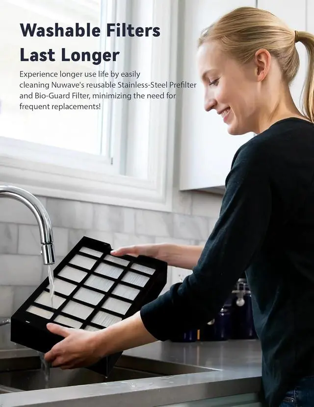 WASHABLE & REUSABLE FILTER TECHNOLOGY Never-rust stainless-steel pre-filter and Bio-Guard filter are washable and reusable. The Ozone emission removal filter is reusable, these filters were designed to eliminate costly replacements. The True HEPA and Carbon filter is replaceable every 12 months.