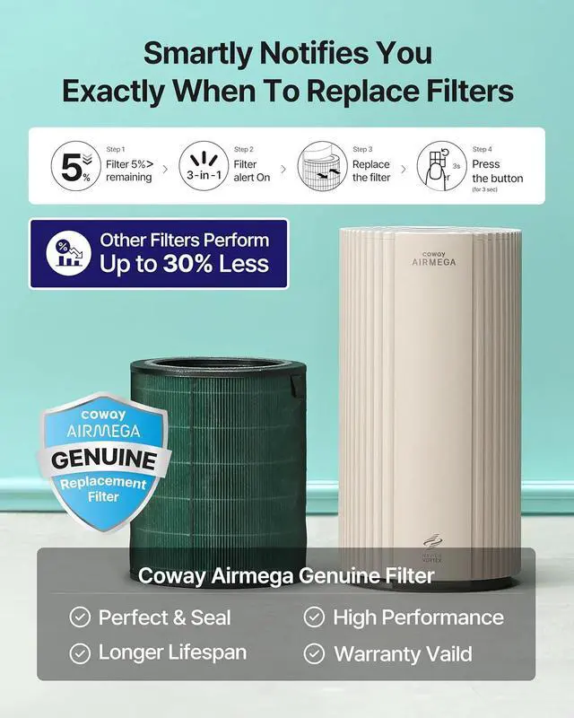 [Smart Mode] With its Smart Mode feature, the Airmega automatically adapts to its surroundings by adjusting fan speeds based on the room's air quality. That means your unit is energy efficient without compromising effectiveness