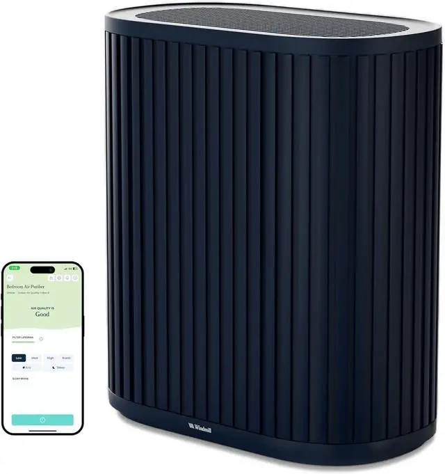 Windmill Air Purifier for Home - 3-In-1 Filtration for Smoke & More - True HEPA Filter, Activated Carbon, & Pre-Filter - Covers Up To 1950 sq ft - Ultra-Quiet - App Compatible - Navy
