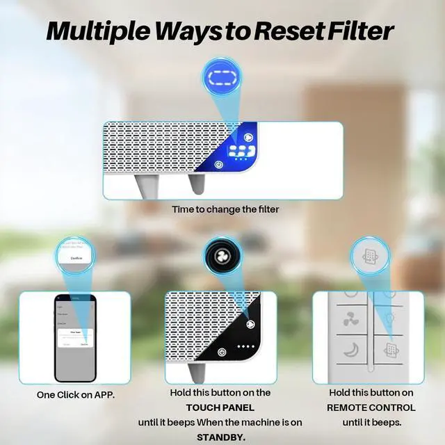 WiFi & Remote Control - Compatible with Google Assistant, Amazon Alexa, and Tuya Smart, you can set it to run or turn off at specific times, check filter life, and change fan speed and cleaning mode. In addition, this large home air purifier is equipped with a remote control for the elderly and people who don't like too many APPs.