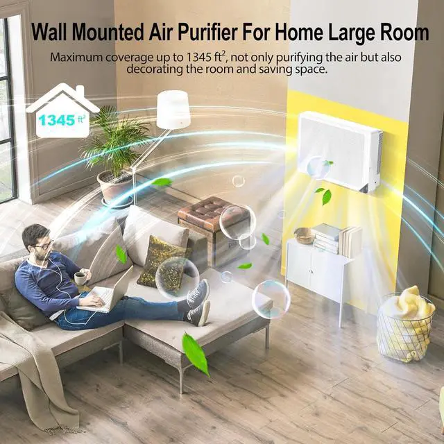 NEWPAD Air Purifiers for Home Dust Pollen Pets Hair in Bedroom, Wall Mounted HEPA Air Purifier for Home Large Room Covers Up to 1345 sq.ft, Sleep Mode, Auto Mode, WiFi/Remote Control, Timer