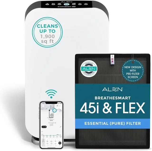 Alen Air Purifier BreatheSmart 45i HEPA with Pure Filter for Large Rooms |1900 Sq. Ft.| Perfect for Bedrooms & Home Offices - Captures Dust + Pet Dander & Household Odors - White