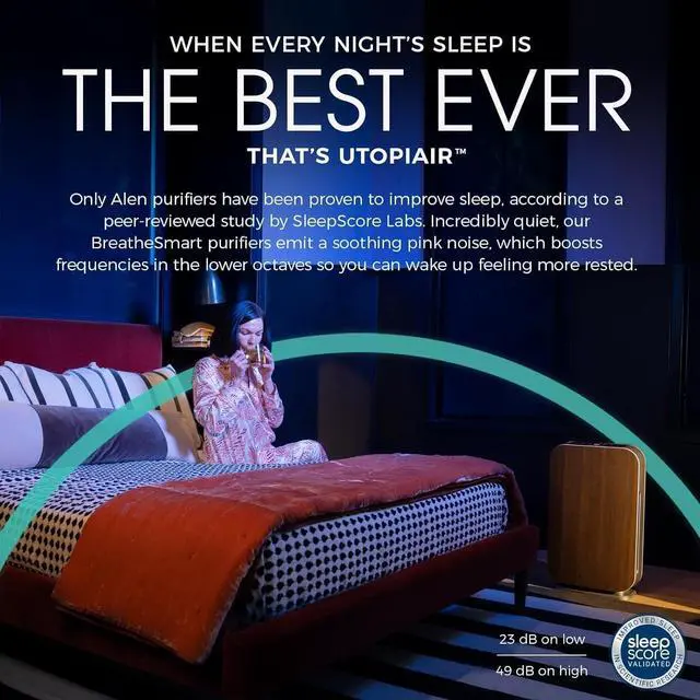 Sleep Enhancing: The BreatheSmart 45i is proven by SleepScore Labs to enhance sleep according to a peer study. Its ultra-quiet operation emits pink noise, optimizing lower octave frequencies, and ensuring a restful night