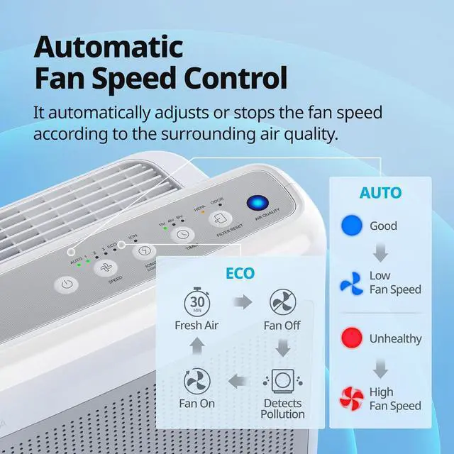 [Auto Mode] Constantly monitoring the air quality, the fan automatically adjusts to most effectively purify your space as needed providing a new level of clean in real time.