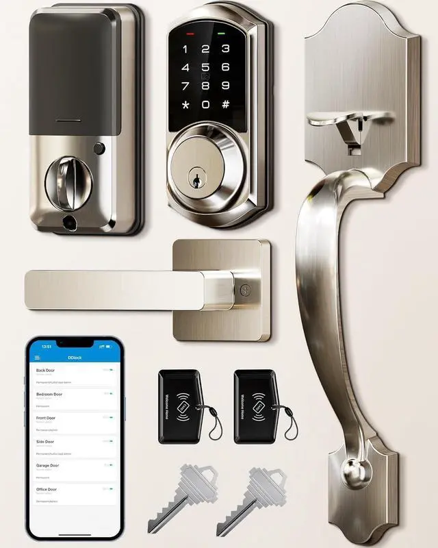 Smart Lock with Handle Set: 5 ways to access your smart lock via App + Code + Fobs + Mechanical key + Thumb turn