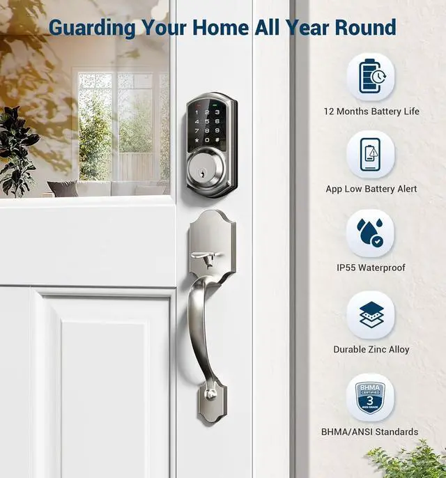 Enhanced Security: The smart deadbolt features auto-lock, one-touch locking, privacy mode, passage mode, and low battery alert, made with an anti-peeping and anti-hacking touchscreen keypad, keeping your home secure