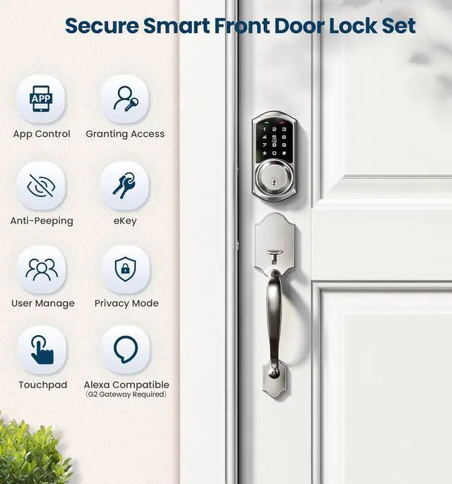 Smart Home Integration: With the Veise G2 gateway(sold separately), you can remotely access your smart deadbolt and voice control with Alexa and Google Home, receive real-time push notifications, monitor smart lock status, etc