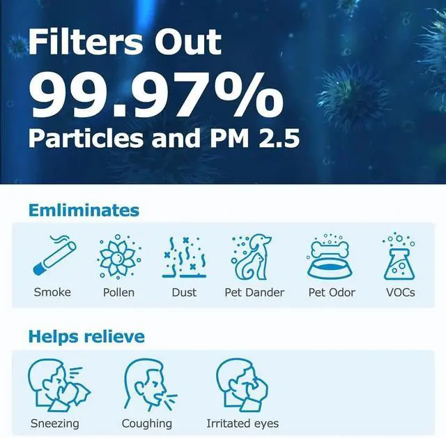 FILTRATION TECHNOLOGYOur MSA3 true HEPA filter replacement features a 3-stage filtration design: Pre-Filter - Clean up Hairs, Dust & Fiber; H13 TRUE HEPA Filter - Works for Smoke, Pollen & Pet Dander; Activated Carbon Filter - Quickly neutralize Bad Smells, Pet Odor and VOCs to freshen the air quality. (The upgraded filter adopts advanced technology to optimize the structure and content of activated carbon, and the deodorizing effect is greatly improved)