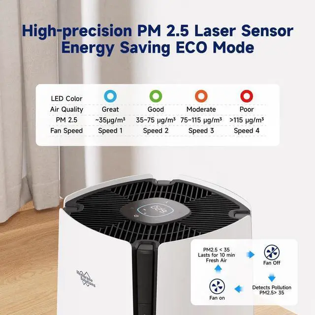 - With a CADR of 353 CFM, the MS601 Changes air fast within a 3027 sqft space! Features Sleep Mode, WiFi Mode, Air Quality Sensor, 4 Fan Speeds. CE FCC RTL and RoHS Certified. Replacement Integrated Filter available. Normally Filter Lifespan is 6 Months! Try this MS601 now. It's a breath of fresh air.