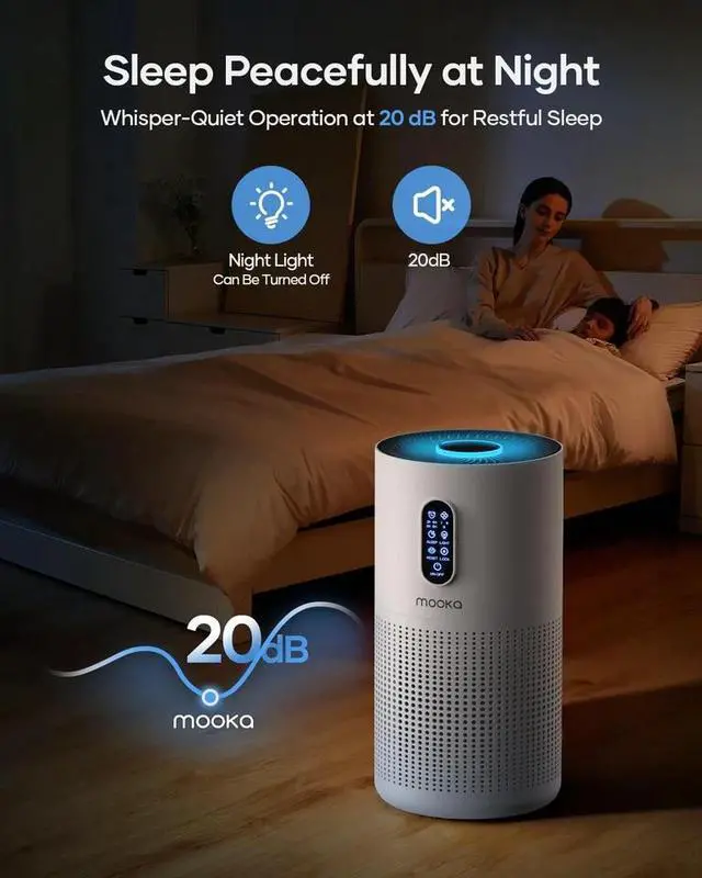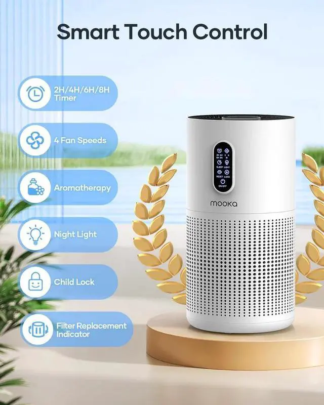 FILTER REPLACEMENT REMINDER: This air purifier for dorm is equipped with a filter replacement reminder to ensure that you always enjoy the fresh air. When the HEPA air filter has been used for over 1440 hours, the filter indicator light will light up to remind you to replace the filter. Press the "Filter Reset" button for 3 seconds to reset it. We recommend buying official MOOKA filters to replace the filter for optimal purification. (Search for B0DDCSS24Y)