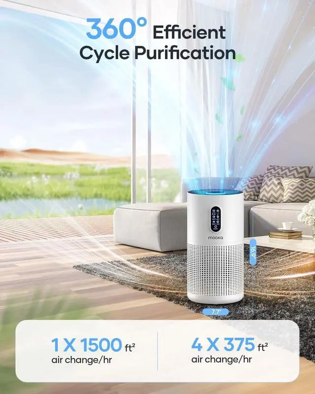 POWERFUL H13 TRUE HEPA AIR PURIFIER: MOOKA pet air purifier is equipped with 3-stage high-efficiency filtration system, effectively filters pet hair, dander, smoke, odor and large dust particles, in addition to removing all airborne contaminants as small as 0.3 microns