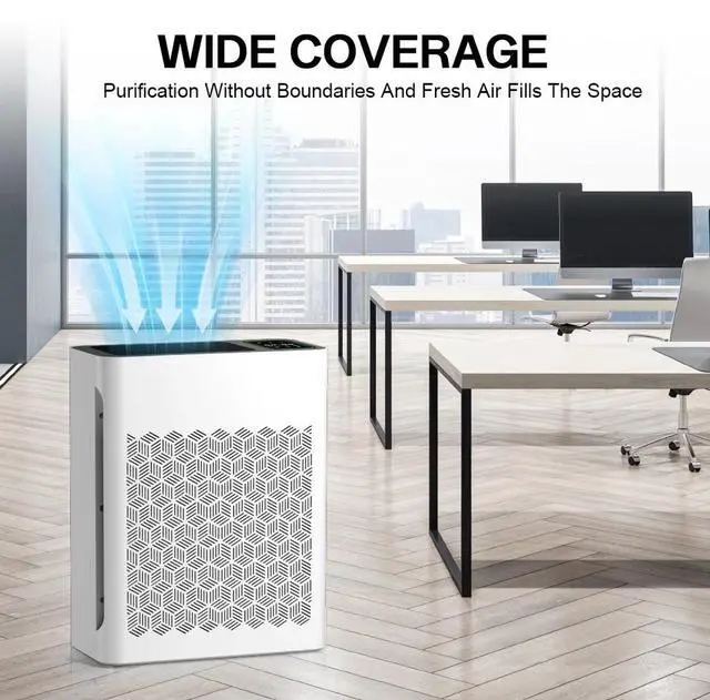 EFFICIENT H13 PURIFICATION: The air purifier has a powerful filtration system that can remove particles as small as 0.3 microns, including dust and pollen. It can cover up to 1095 sq ft / 102 m² and refresh the air in a room every hour. Additionally, it has a UV lamp for sterilization, which eliminates germs in the air. This combination ensures thorough purification and a healthier indoor environment.