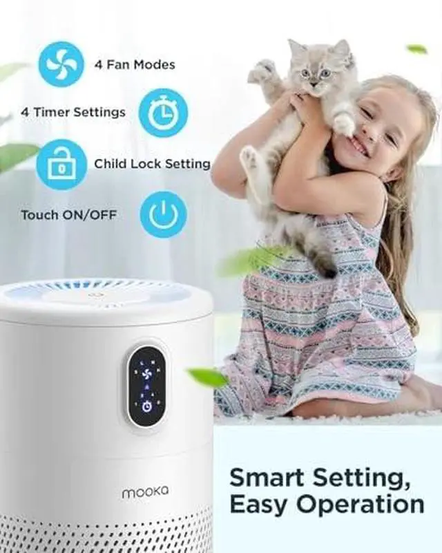 ULTRA-QUIET, ENERGY-SAVING & SAFE: Thanks to the new brushless motor, the 20dB noise level is almost voiceless. It cleans your air, doesn't affect your work, study or sleep. Running in low power makes it extremely energy-saving. Child lock prevents error operations caused by pets or children.