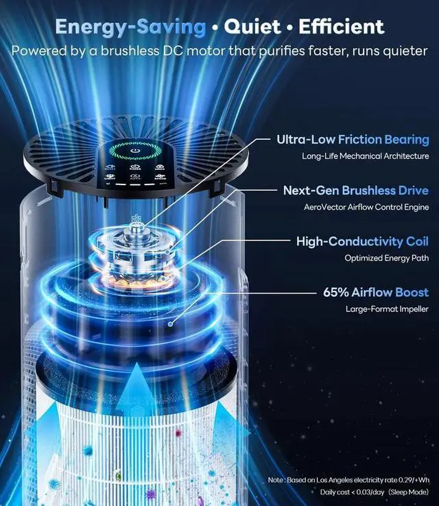 No Noise, No Light Only Better Sleep:Bright indicator lights and noisy purifiers can ruin a good nights sleep. In Sleep Mode, the air purifiers for home turns off all lights and drops to just 20 dBquieter than a whisperso you can fall asleep faster and stay deeply asleep without noise or glare in your bedroom.