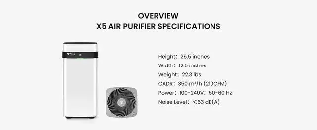 Real-Time Air Quality Monitoring Stay informed with the X5s real-time display that updates you on the air quality levels in your home, allowing for automatic adjustments to ensure optimal air quality at all times.