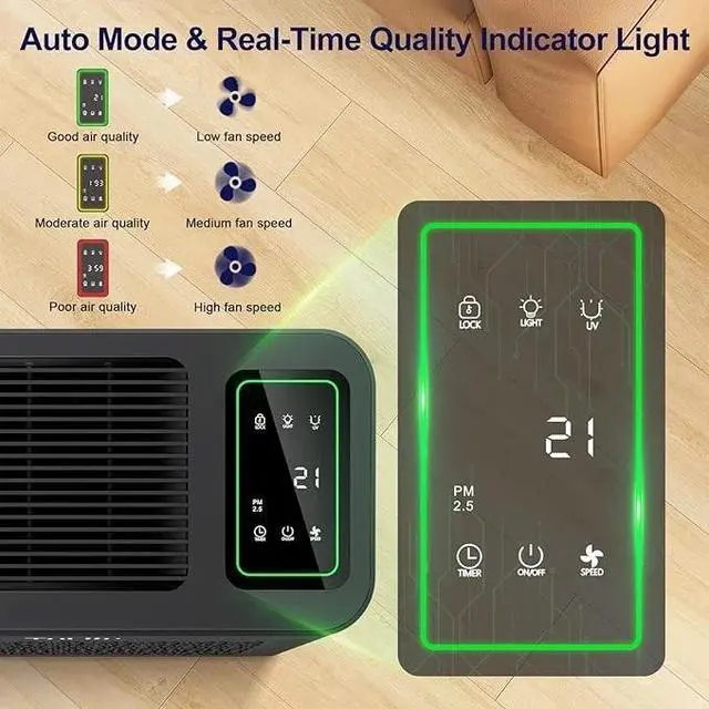 SMART AIR PURIFIER: This air purifier allows for adjustable fan speeds to suit your specific needs. Enjoy a quiet environment with the low fan speed (L1), ideal for daily use with the medium fan speed (L2), or opt for the high fan speed (L3) for rapid purification. Use ToLife air purifier ensuring a healthier indoor atmosphere.