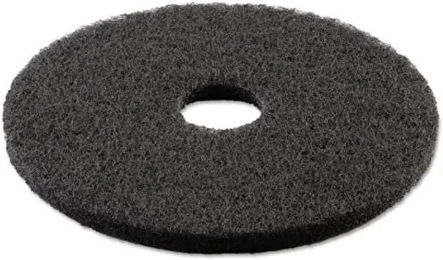 This floor stripping pad is the valuable choice you can rely on for long-lasting stripping of finish, dirt, and buildup. Clean heavily soiled surfaces with ease by using a rotary machine, stripping pad, and appropriate chemicals. The abrasive pad works to remove stubborn stains and finishes. For use with rotary machines (Speed of 175 to 600 RPM). Color-coded for easy job identification. Floor Pads Application: Stripping; Diameter: 13"; Color(s): Black; Color Family: Black.