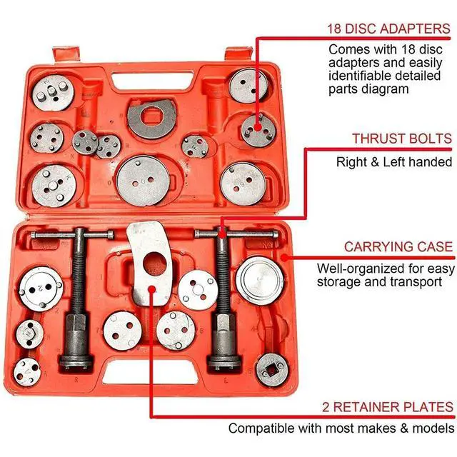 Practical Design: Equipped with left and right hand threaded rewind tools, easily retracting brake pistons into calipers to create clearance for new brake pads; simple and convenient to operate.