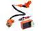 The orange CDI is a ignition module that has no rev limit & also has a single stage advanced timing circuit, this means that you can get a faster response to RPM acceleration and a higher RPM limit at top end if you use the orange CDI.