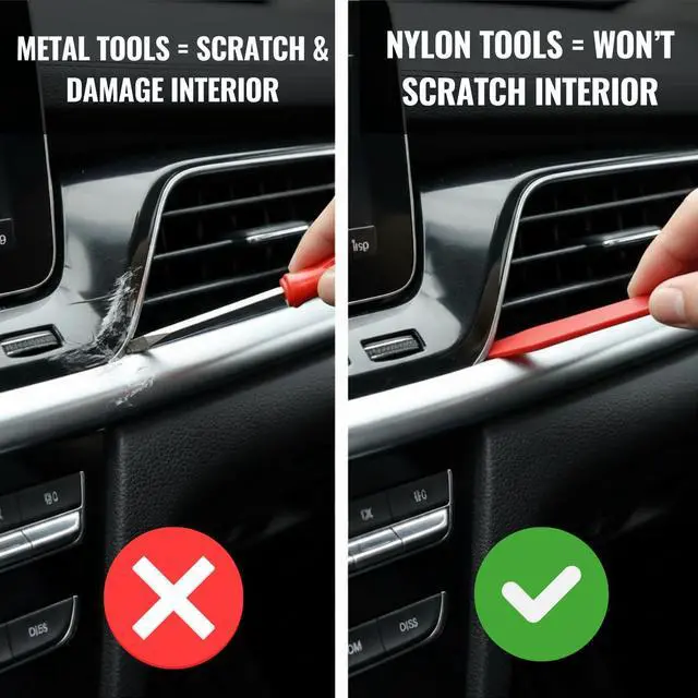 Our kit comes with 6 different tools specifically designed to help you easily remove your car interior plastic trims. Whether you are removing a small plastic panel or large interior pieces, this kit includes everything you need to remove your them safely without scratching your car's interior. Unlike traditional metal tools that can scratch and damage you interior, our tools are made of strong nylon which are extremely strong and also won't scratch your car's interior.