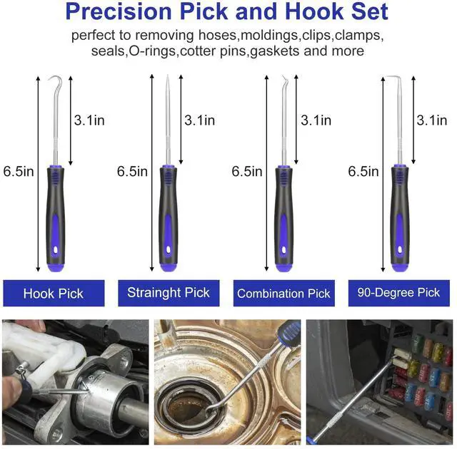 - 4pcs oil seal removal hooks is perfect to removing hoses, moldings, clips, clamps, seals,O-rings,cotter pins, gaskets and more.