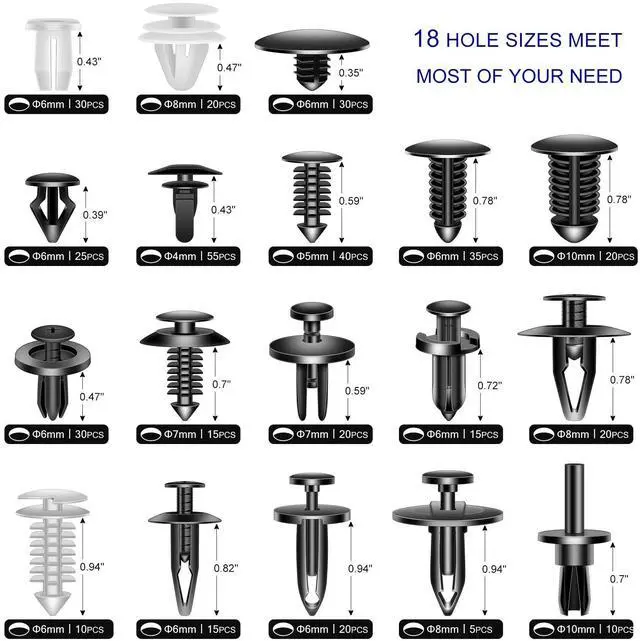 456-Pack: Body repair tools works well to meet your daily needs . There are enough varieties plastic rivets that allow you to choose the appropriate tools to handle different situation.