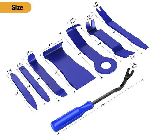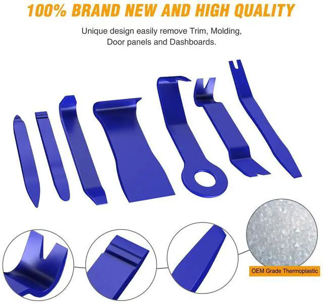 There are 8 pcs different kinds of trim tools, including 7 pcs car door panel removal tool and 1 fastener remover to facilitate your needs when repairing.