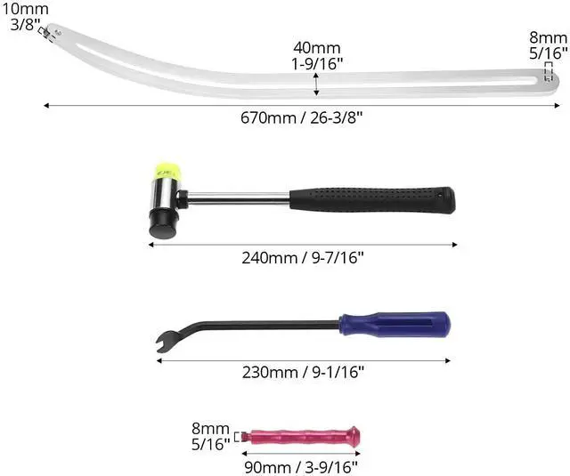 Featuring a newly engineered dent puller with a flexible bending range, this kit is specifically designed for fender repair. The included rubber mallet and uniquely curved rods allow for the precise rectification of small, irregular dents, ensuring flawless results every time.