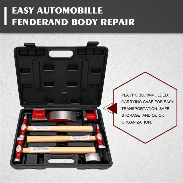- * [FEATURES]: This comprehensive hammer and dolly repair set features all the tools necessary for automobile fender, bumper, and large or small body car dent repairs.