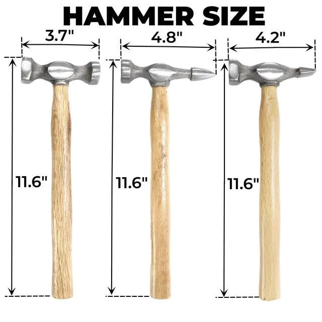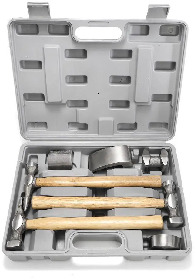 Including 11.6 inches standard bumping hammer, pick & finish hammer, reverse curve hammer, and curved dolly, utility dolly, double end hand dolly, shrink dolly.