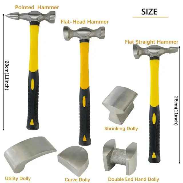 Comprehensive toolset Includes 3 hammers and 4 precision dollies, covering a wide range of profiles and shapes for various body repair needs. Comes with a convenient storage case for easy organization.