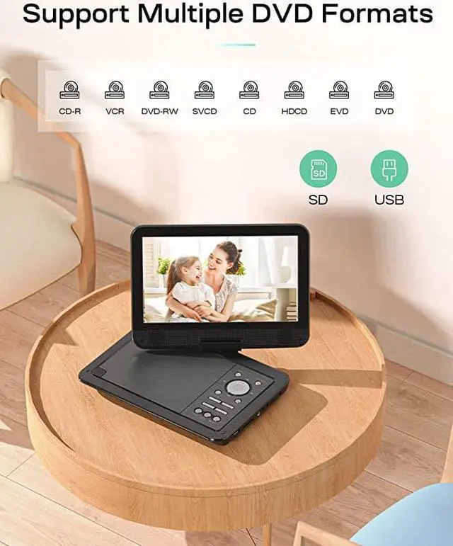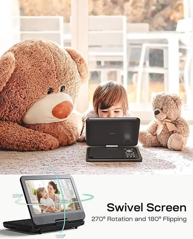 Our YOTON portable DVD player features dual stereo speakers to give you a good sound experience when watching a movie.