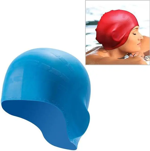 Silicone Ear Protection Waterproof Swimming Cap for Adults with Long Hair Long Hair Swimming Cap(Blue) (Blue) Black