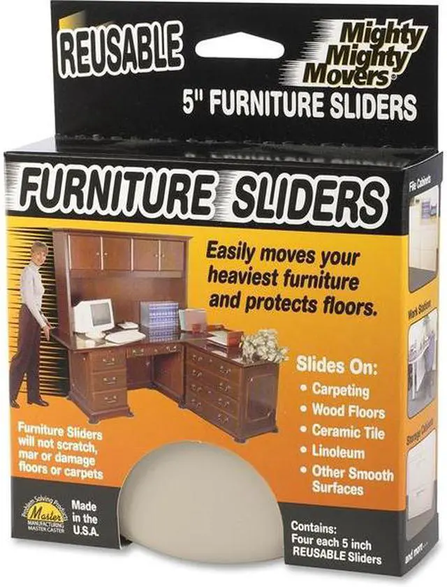 Furniture Movers, Round, Height 3/8 In, Diameter 5 Inches, Material Polymer Plastic/Foam Cushion, Color Beige, For Use On All Flooring, Package Quantity 4. This item has been restricted from sale in the following state (s): []
