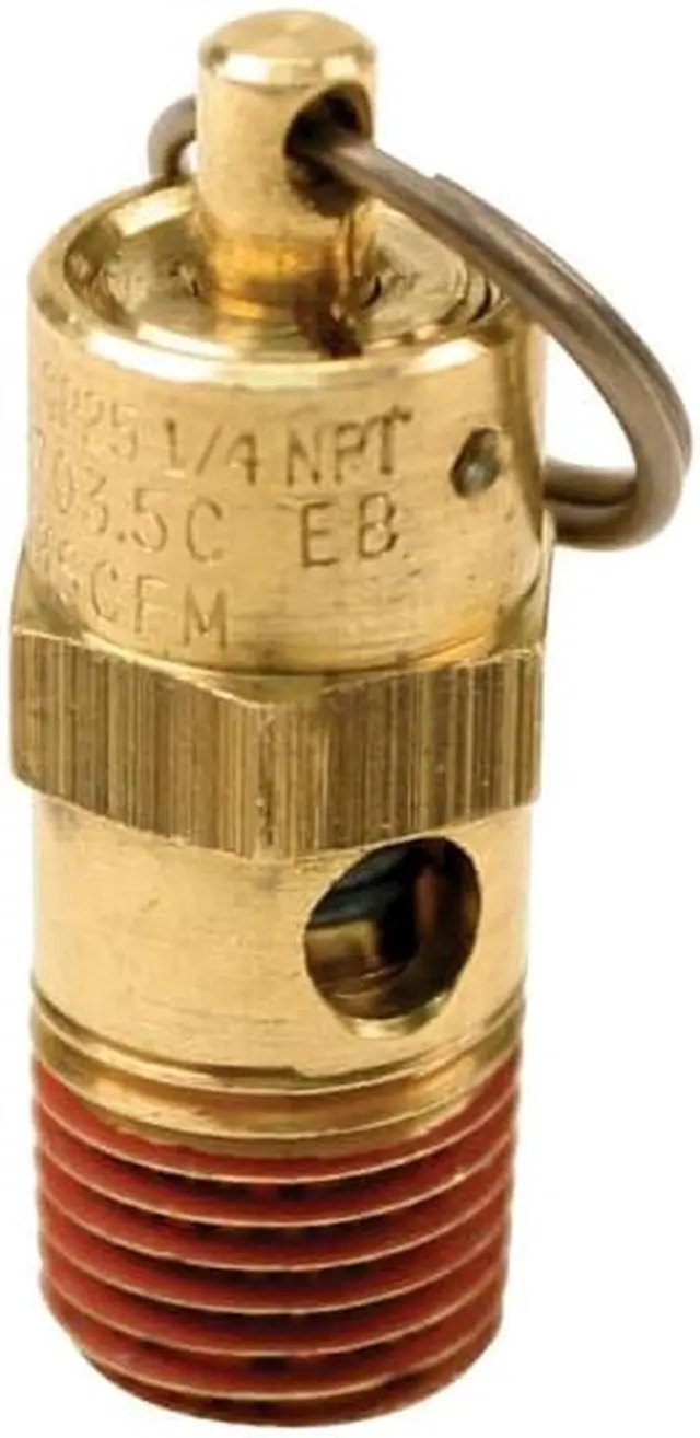 VIAIR offers the most complete line of air compressors & air accessories for both the on-and off-road markets available anywhere. VIAIR compressors and components are used in the OEM segment- 4x4 & Sport Air Suspension and have become the industry standard for both 12- and 24-volt automotive applications worldwide. VIAIR compressors are currently being used in every corner of the Globe- even in the world-s harshest environments from arctic climates to the world-s harshest deserts- from North America to Europe- Africa- Asia- and even Australia. VIAIR is recognized by its customers and peers alike as the leading manufacturer of high performance air compressors for mobile pneumatic applications. Our goal is to consistently deliver performance- reliability and value to our customers; providing the ultimate Vital Air Source - the heart of any mobile pneumatic system to our valued partners worldwide. 175 PSI Hi-Temp Rated Safety Valve (1/4- M- NPT).