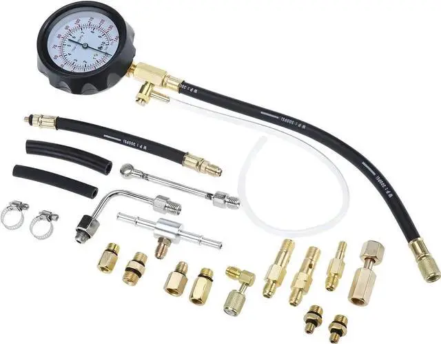Use the tee fitting to measure the fuel pressure gauge on the line between the fuel pressure regulator and the injector.