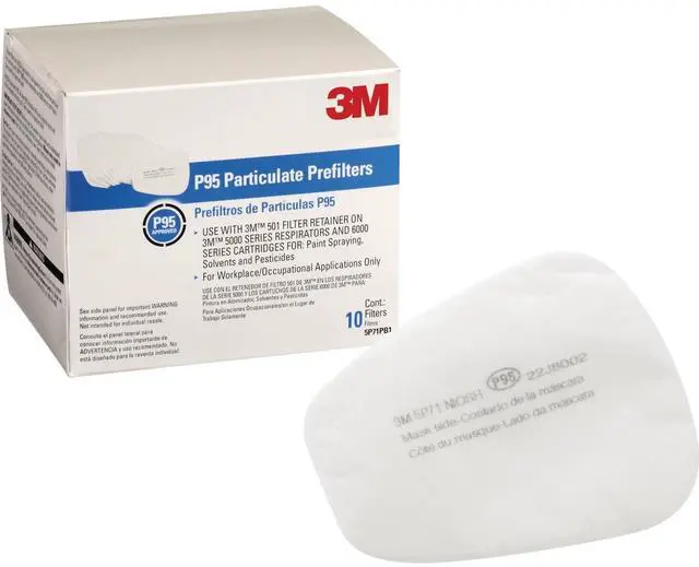 Replaceable paint spray/pesticide pre-filter for 3M dual cartridge respirator. Filter has been rated P95. Use with model No. 52P71, R5211, R6211, R6311, and R7512 respirators. Classification: P95
