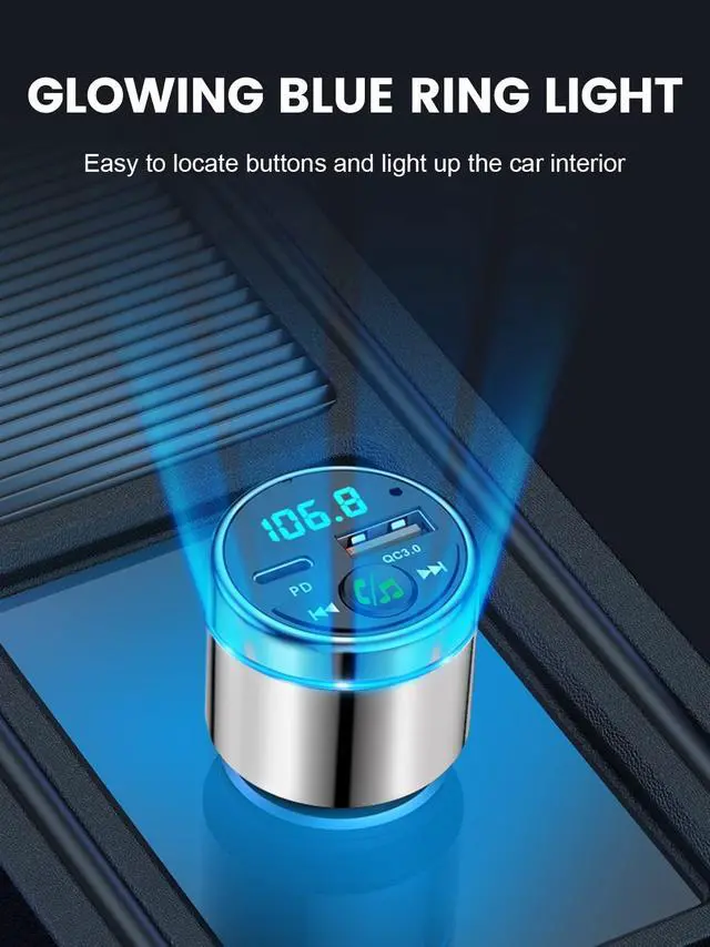 FM Transmitter for Car Bluetooth 5.3, All-Metal PD 20W & QC 3.0 18W Fast Charger, Wireless FM Radio Car Kit Bluetooth Adapter, Noise Cancelling Hands-Free Call, Hi-Fi Music, Ring Light