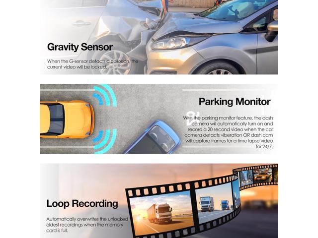 - Supercapacitor & Parking Monitor: Supercapacitor prevents the risk of overheating, extends the life span and reliability of the camera. With the parking monitor feature, the dash camera will automatically turn on and record when the car camera detects vibration OR the dashcam will capture frames for a time-lapse video 24/7. Please connect the smart hardwire kit to activate the parking mode.
