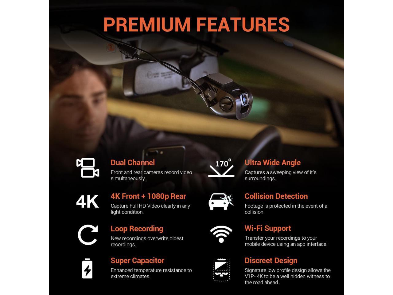Rexing V1P 4K 2.4" LCD 2160p Front + 1080p Rear Wi-Fi 170° Wide Angle Dual Channel Dashboard Camera Recorder Car Dash Cam with Rear Cam, G-Sensor, WDR, Loop Recording Mobile App Supercapacitor (2021)
